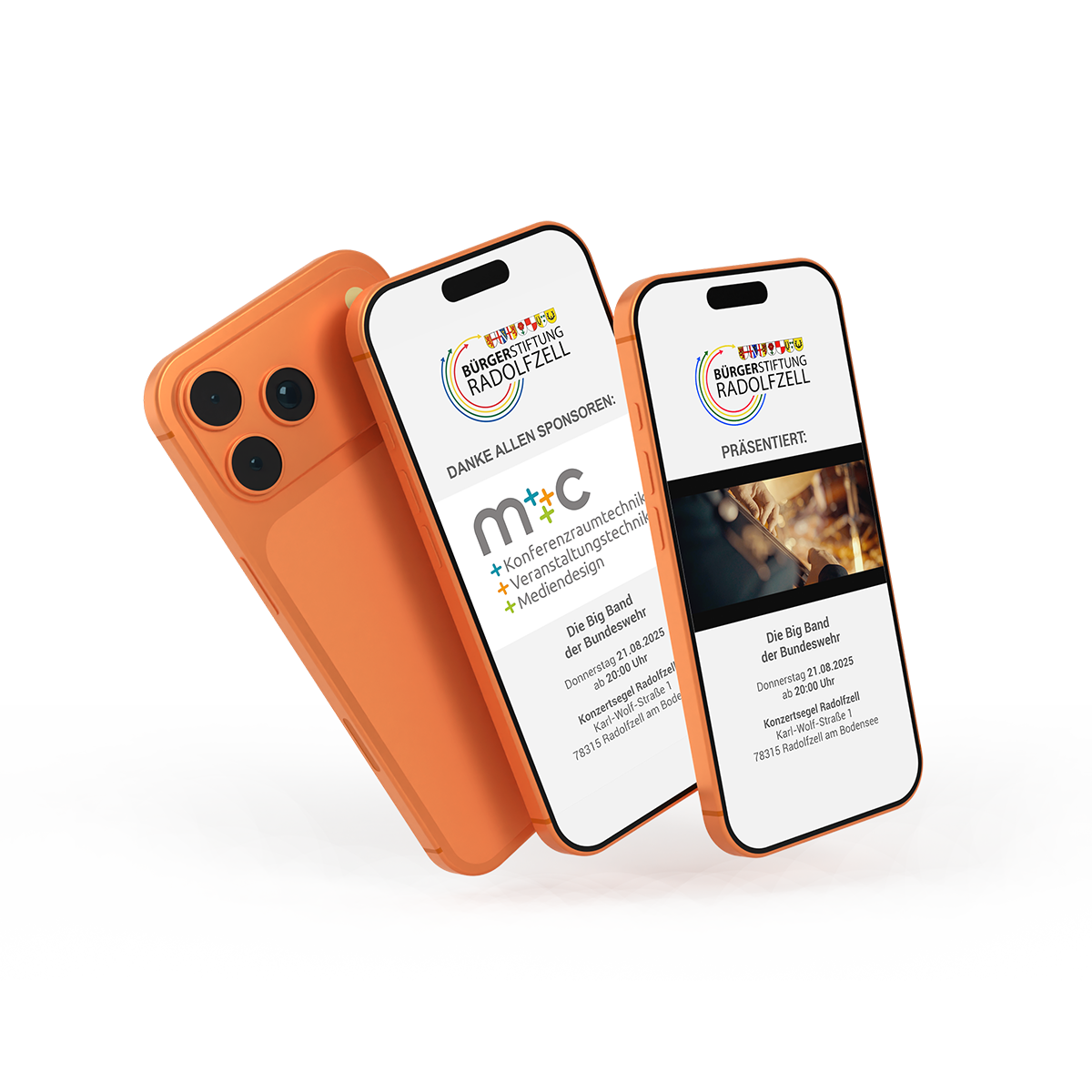 Die Bürgerstiftung setzt sich mit großem Engagement für soziale, kulturelle und gemeinnützige Projekte in und rund um Radolfzell ein. Um diese wichtige Arbeit sichtbar zu machen, unterstützen wir sie mit Designlösungen, die Professionalität, Wertschätzung und Gemeinschaft vermitteln